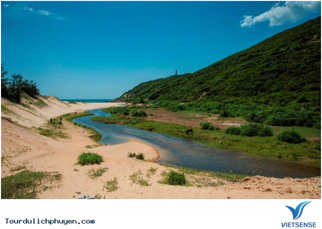 Một điểm đặc trưng của Bãi Môn là hình ảnh những cây rau muống biển leo kín nhiều đụn cát. Đặc biệt, chạy dọc ra biển có một dòng sông nước ngọt với nhiều chú bò thong dong gặm cỏ. Các thành viên trong đoàn bắt đầu tản ra, tìm cho mình những góc máy riêng. Cứ thế thả mình cùng thiên nhiên, dưới cái nắng miền Trung rát da chúng tôi say sưa tác nghiệp, thỏa cái đam mê và sáng tạo.